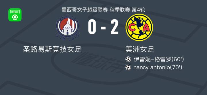 美洲女足2-0圣路易斯竞技女足,伊雷妮-格雷罗建功,nancy antonio锁定胜局