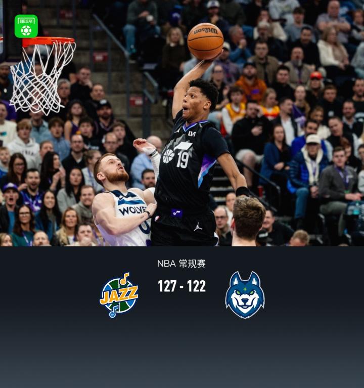 第四节爵士科利尔拿下12分,森林狼爱德华兹拿下9分,最终爵士127-122战胜森林狼
