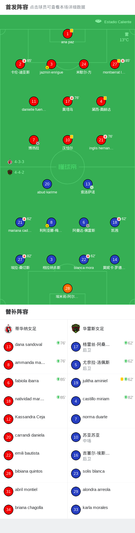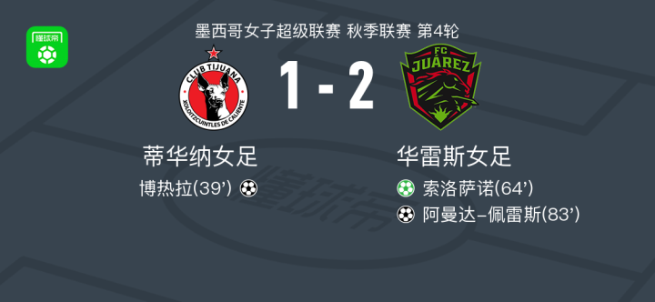 北京时间1月21日,墨西哥女子超级联赛秋季联赛第4轮展开较量,蒂华纳女足坐镇主场迎战华雷斯女足。比赛中,博热拉率先为蒂华纳女足取得进球。随后,索洛萨诺通过点球为华雷斯女足扳平比分。比赛后段,阿曼达-佩雷斯攻入反超一球,帮助球队实现逆转。最终,华雷斯女足以2比1战胜蒂华纳女足,全取三分。