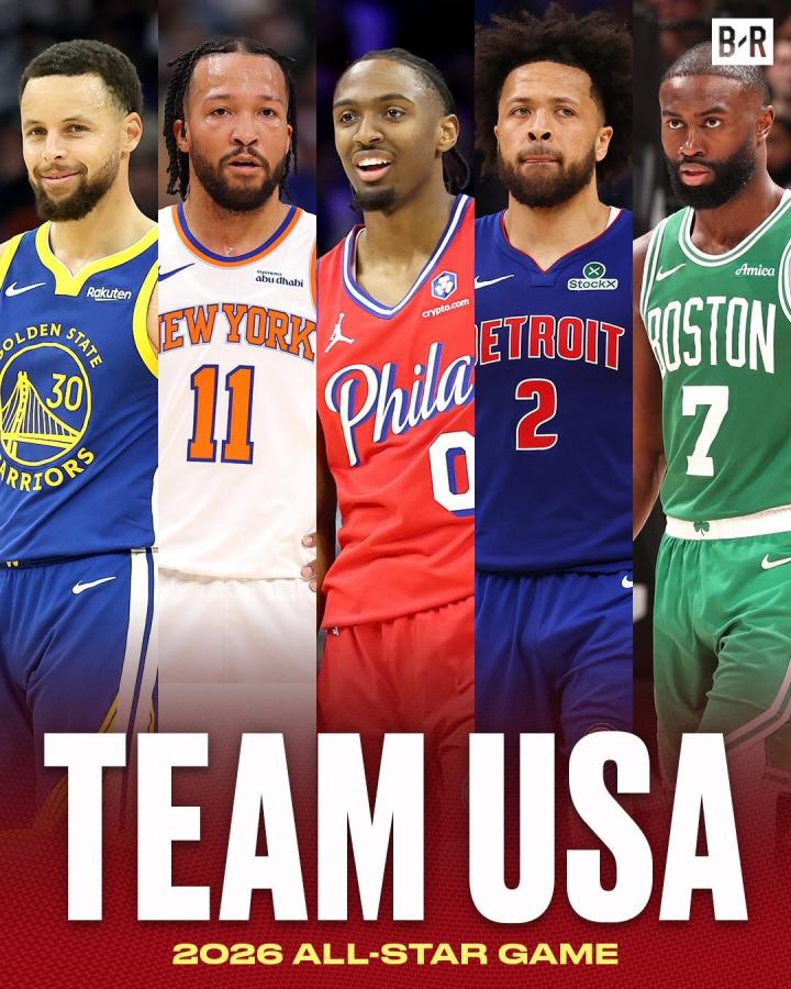 在全明星美国队首发五人中,有4名控球后卫,仅有杰伦-布朗一名前锋,他和坎宁安也是美国队首发最高的球员,两人均为1.98m。