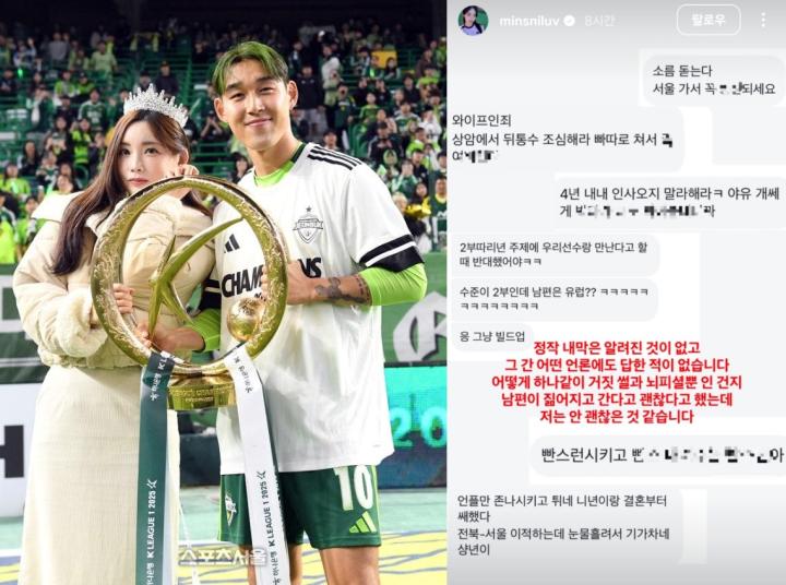 不过由于宋旻奎当时不和全北续约时是表示“去欧洲,希望俱乐部放行”。如今他选择转投自由身加盟全北死敌,引起了全北球迷的不满,他们将难听的语言发到宋旻奎的社交平台,甚至攻击他的新婚妻子。不管如何,宋旻奎放弃留洋选择留在韩国是事实,新赛季首尔和全北的比赛,会很有看点。