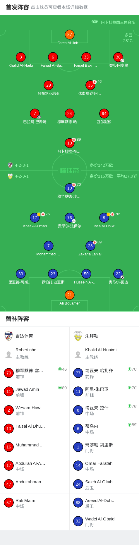 第70分钟,朱拜勒球员费萨尔-法伊尔助攻奥马尔-瓦达打入一球。