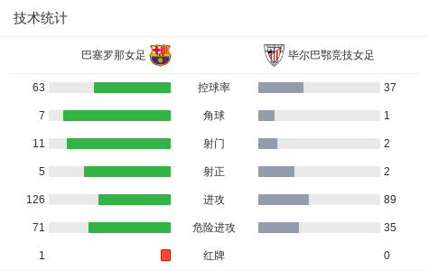 上半场补时第6分钟,巴塞罗那女足球队纳萨雷特吃到红牌。