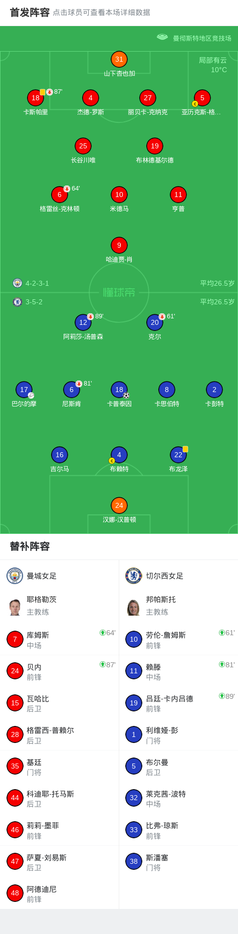 切尔西女足1-0曼城女足,卡普泰因一击制胜