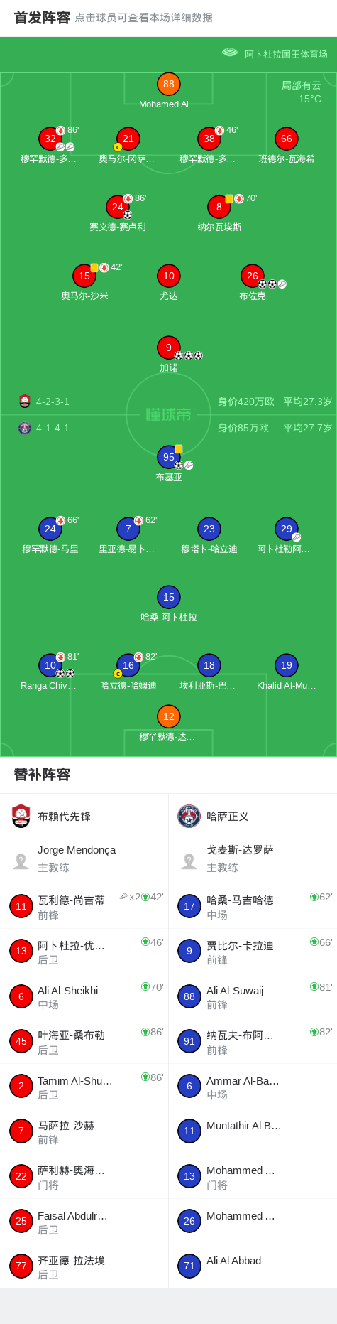 第26分钟,哈萨正义球员阿卜杜勒阿齐兹-朱曼助攻Ranga Chivaviro打入一球。
