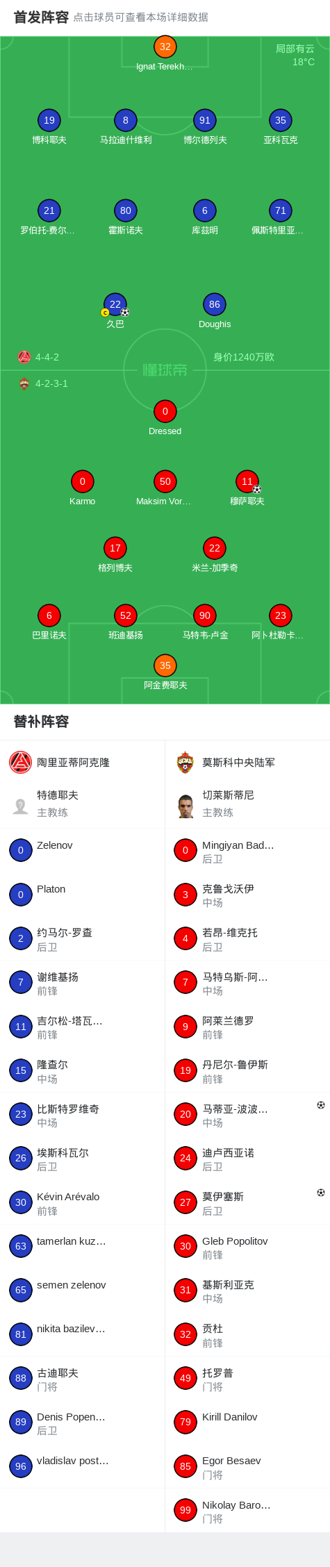 第42分钟,莫斯科中央陆军球员穆萨耶夫打入一球。