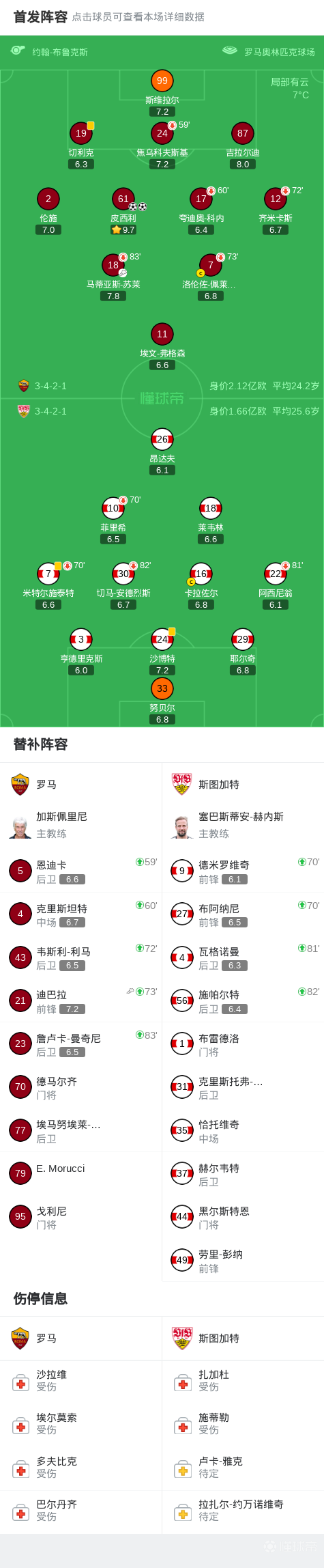 罗马2-0斯图加特,皮西利独中两元