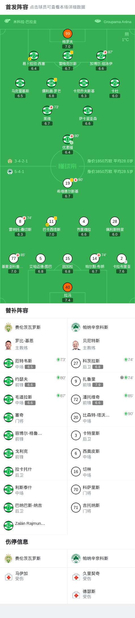 费伦茨瓦罗斯1-1帕纳辛奈科斯,优素福首开记录,扎鲁里扳平