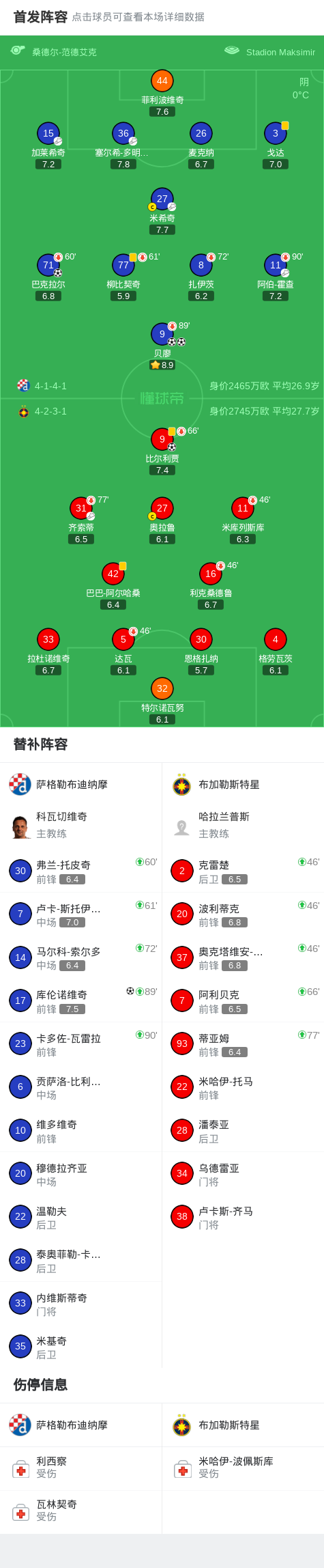 第71分钟,萨格勒布迪纳摩球员米希奇助攻贝廖打入一球。