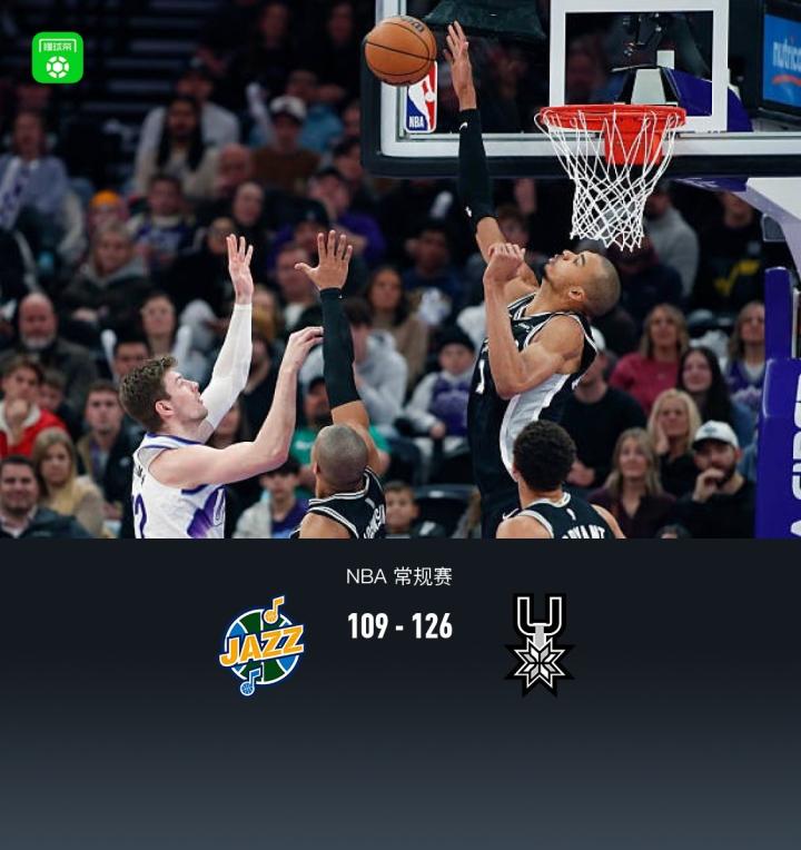 马刺126-109大胜爵士,文班26+13+5帽,福克斯31+5+5