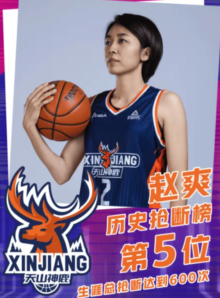 在1月21日的一场WCBA常规赛中,赵爽登场打比赛,单场贡献3次抢断,让自己的WCBA生涯总抢断数达到了601次,超过了600次,排在WCBA史上第5位。