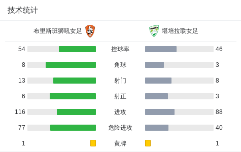 第45分钟,布里斯班狮吼女足球员Ashlyn Miller助攻Daisy Brown打入一球。