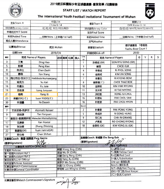 也是在2019年,杨希首次入选了国字号队伍,在六七月份回国代表U14国少队参加了“武汉杯”国际少年足球邀请赛。