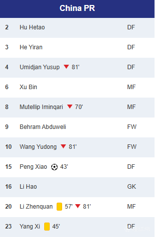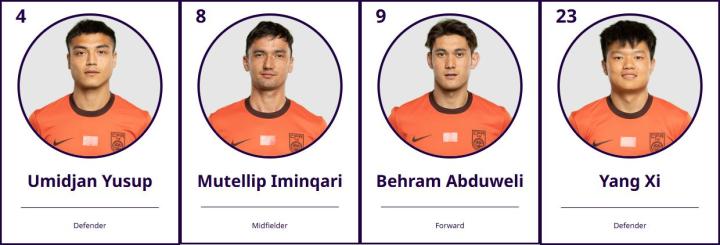 另外在亚足联官网的比赛战报和球队信息界面中,他们把杨希的名字又写成了汉语拼音下的Yang Xi,而三位新疆球员的名字则也变城了维吾尔语拼写的字样。