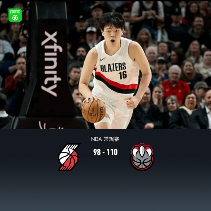 开拓者98-110不敌猛龙,杨瀚森0分3板,夏普21+7