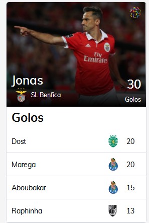 在本菲卡的队史上,若纳斯是第二位至少2次完成单赛季30粒(及以上)联赛进球的球员,上一位可以完成这项壮举的球员是“黑豹”尤西比奥。除此之外,他还是队史上完成单赛季进球30+第二年长的球员。(若纳斯现在33岁,曼努埃尔-费尔南德斯曾在34岁实现了单赛季进球30+的突破,并拿到当赛季的最佳射手)