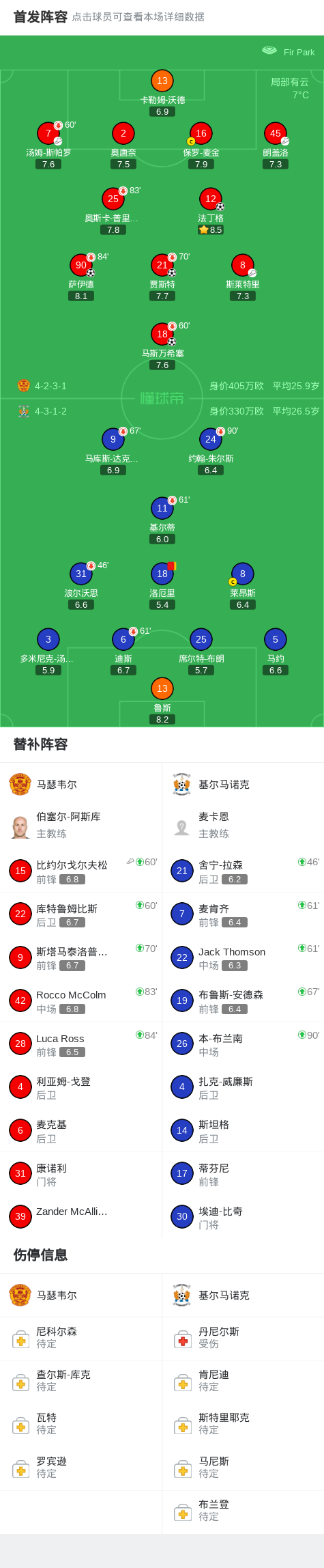 马瑟韦尔4-0大胜基尔马诺克,法丁格、萨伊德破门