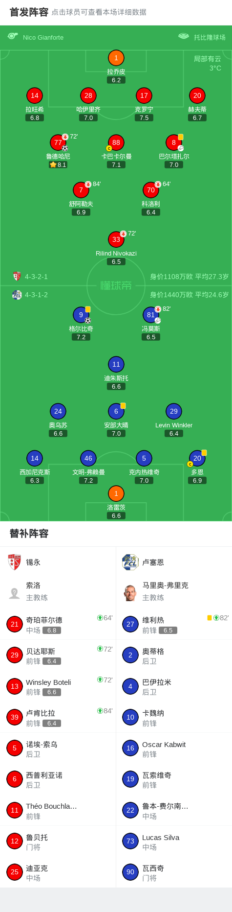 锡永1-1卢塞恩,格尔比奇首开记录,鲁德哈尼救主
