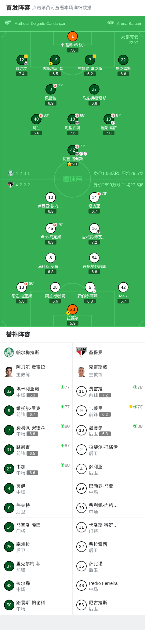 帕尔梅拉斯3-1圣保罗,赫尔文、何塞-洛佩斯破门