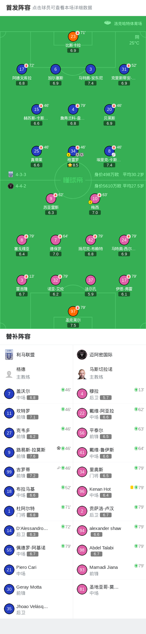 利马联盟3-0大胜迈阿密国际,格雷罗两球,路易斯-拉莫斯破门