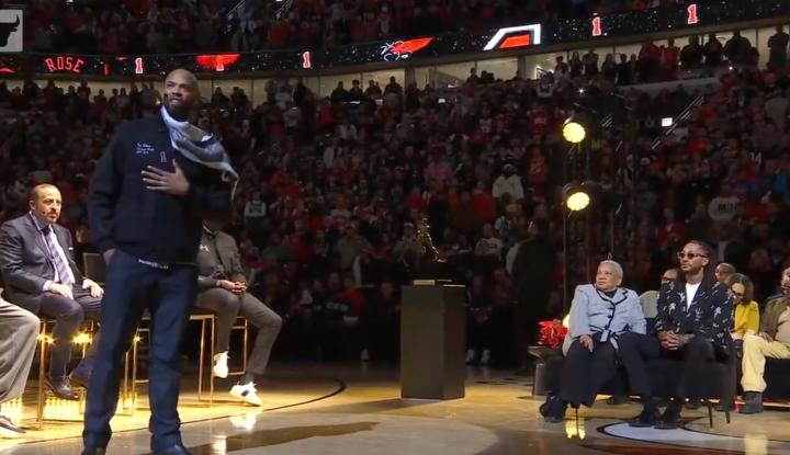 北京时间1月25日,前NBA球星德里克-罗斯的公牛队1号球衣在芝加哥联合中心球场正式退役。仪式上,前队友泰-吉布森发表了感人的演讲。