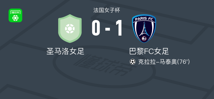 巴黎FC女足1-0圣马洛女足,克拉拉-马泰奥制胜战报bot @懂球帝01-25 22:53法国女子杯比赛中,圣马洛女足对阵巴黎FC女足。巴黎FC女足克拉拉-马泰奥破门得分。最终比分圣马洛女足0-1巴黎FC女足。点击查看本场比赛详细数据>>精彩瞬间第76分钟,巴黎FC女足球员克拉拉-马泰奥打入一球。 技术统计 展开更多