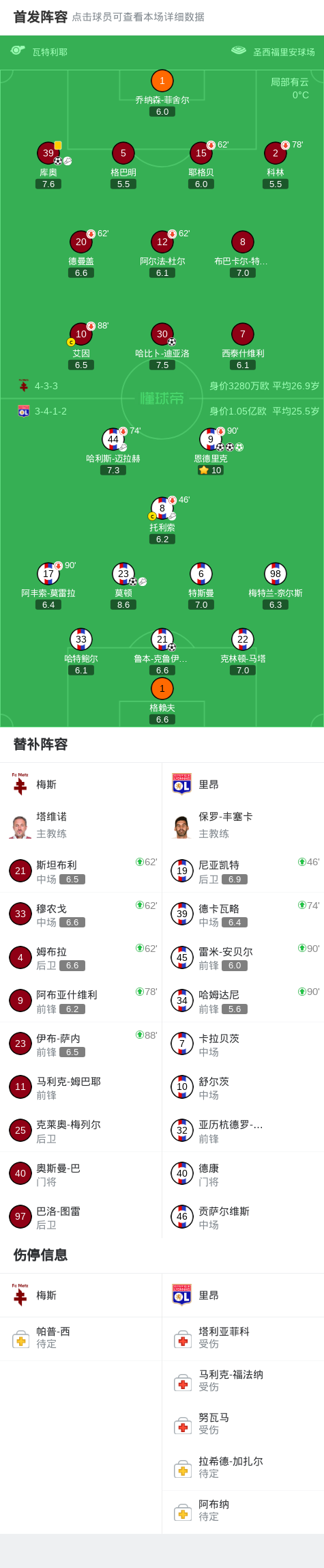 里昂5-2大胜梅斯,恩德里克帽子戏法,莫顿建功