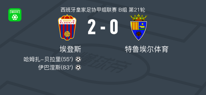 埃登斯2-0特鲁埃尔体育,哈姆扎-贝拉里建功,伊巴涅斯锁定胜局