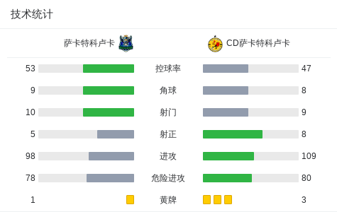 第39分钟,CD萨卡特科卢卡球员Jorge Alberto Mundo Reyes打入一球。