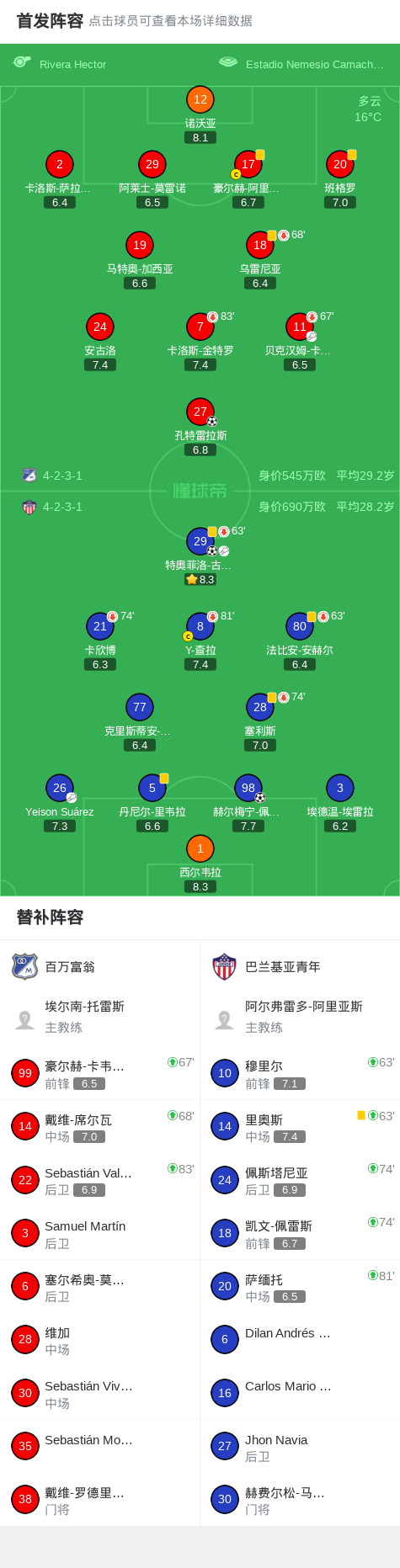 第45分钟,巴兰基亚青年球员特奥菲洛-古铁雷斯助攻赫尔梅宁-佩尼亚打入一球。
