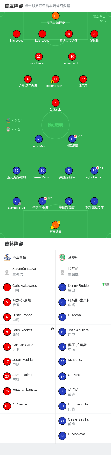 下半场补时第7分钟,洛沃斯墨球员Jairo Róchez打入一球。