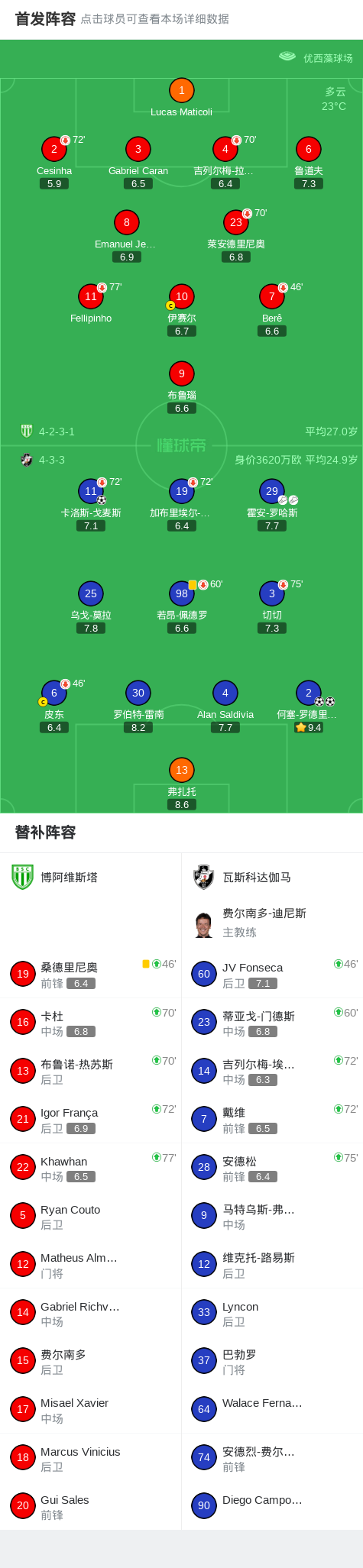 上半场补时第3分钟,瓦斯科达伽马球员何塞-罗德里格斯打入一球。