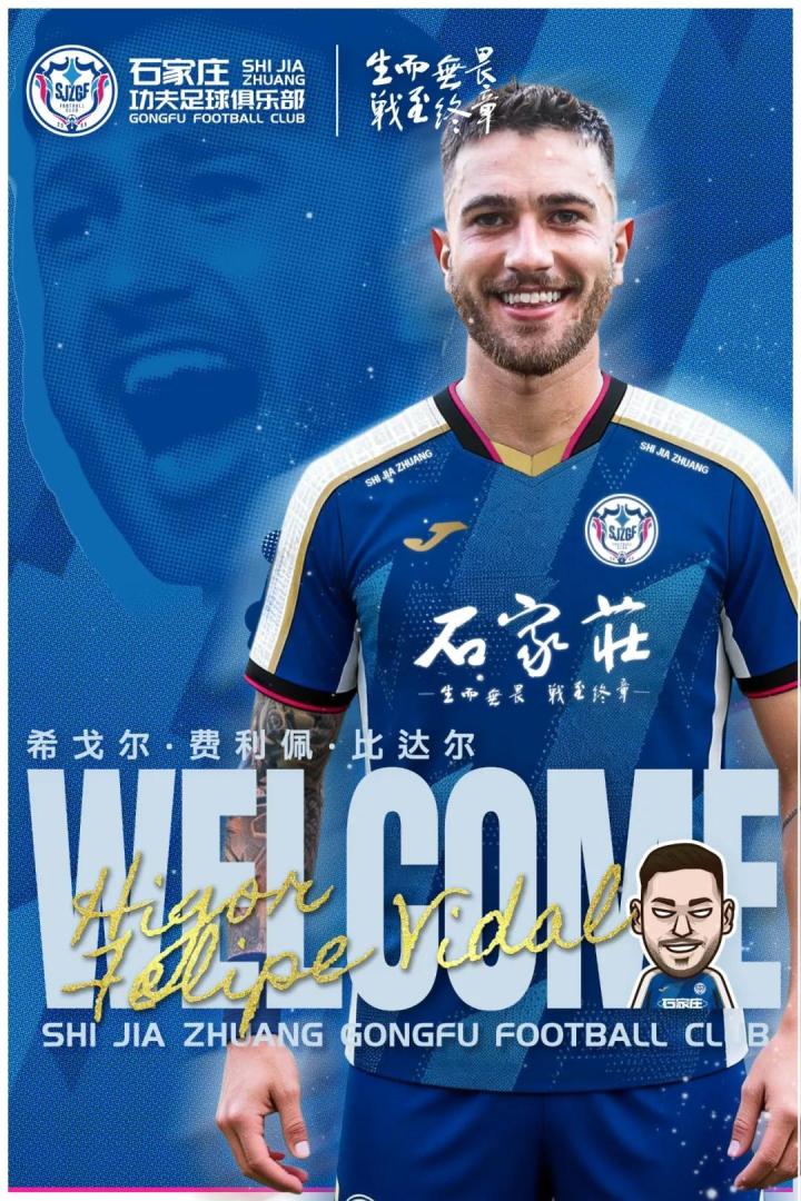 经与球员本人及图达都拉斯足球俱乐部友好协商并达成一致,即日起,巴西籍球员希戈尔-菲利佩-比达尔(Higor Felipe Vidal)正式加盟石家庄功夫足球俱乐部。