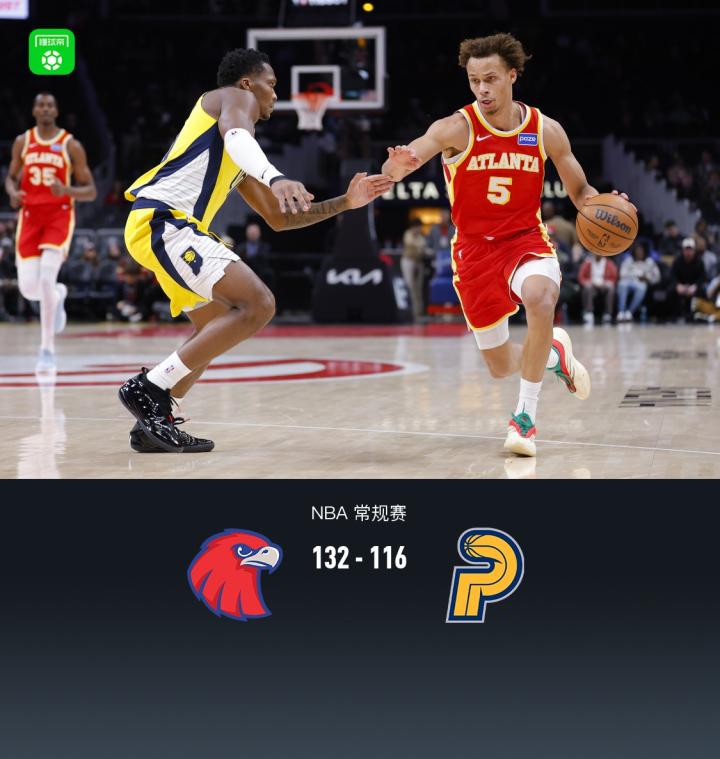 第四节老鹰亚历山大-沃克拿下8分,步行者麦康奈尔拿下4分,最终老鹰132-116战胜步行者