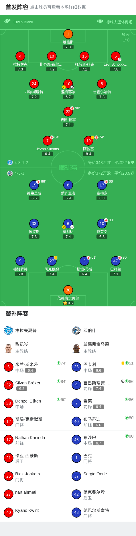 第28分钟,格拉夫夏普球员Levi Schoppema助攻涅梅耶尔打入一球。