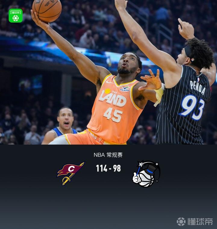 北京时间1月27日NBA 常规赛,克利夫兰骑士对阵奥兰多魔术。半场骑士61-56魔术,最终骑士114-98魔术。克利夫兰骑士米切尔45分4板4助,埃文-莫布利20分9板2助;奥兰多魔术班凯罗37分10板4助,贝恩19分4板。
