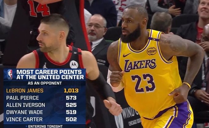 客战公牛球员总得分榜:詹姆斯1013分断档领先,皮尔斯573分第2尼古拉约基奇 @懂球帝01-27 10:51北京时间今日,在NBA常规赛中,洛杉矶湖人队在客场对阵芝加哥公牛队。本场比赛直播期间,转播方晒出了一组数据,数据为NBA历史上作客芝加哥公牛队主场联合中心的客队球员总得分排行榜。其中,詹姆斯以1013分高居榜首,断档领先第二名保罗-皮尔斯的573分。客战公牛球员总得分排行榜1、詹姆斯 1013分2、皮尔斯 573分3、艾弗森 525分4、韦德 519分5、文斯-卡特 502分展开更多