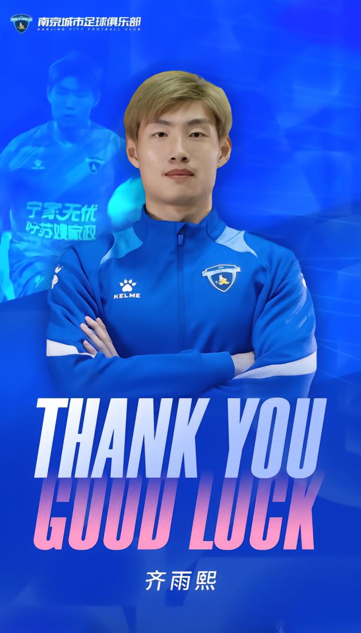 自2023年春天加盟南京城市,齐雨熙为南京城市效力的三个赛季累计出场59次,完成17场零封、123次扑救。效力期间,齐雨熙始终以认真职业的态度投入训练与比赛,是球队可靠的最后一道防线。2024中国足协杯四分之一决赛第18分钟,齐雨熙成功扑出成都蓉城的点球,帮助球队稳住局势,留下令人难忘的瞬间。