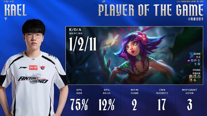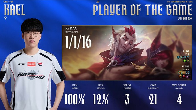 本局MVP给到参团率百分百的Kael!