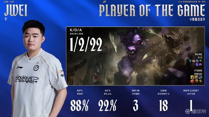 本局MVP给到数次二连开起数人的Jwei!