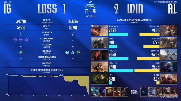 北京时间1月27日,LPL第一赛段,iG对阵AL。最终AL 2-1战胜iG,暂时登顶积分榜。