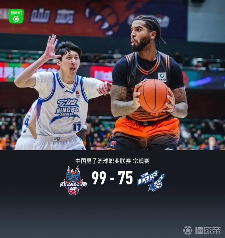 第四节山东王证拿下11分,宁波鲁吐布拉拿下6分,最终山东99-75战胜宁波
