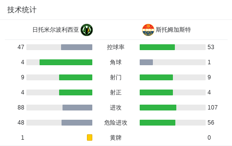 第36分钟,斯托姆加斯特球员Mats Spiten打入一球。