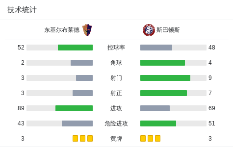 第64分钟,斯巴顿斯球员Mark Stowe助攻麦克纳尔蒂打入一球。