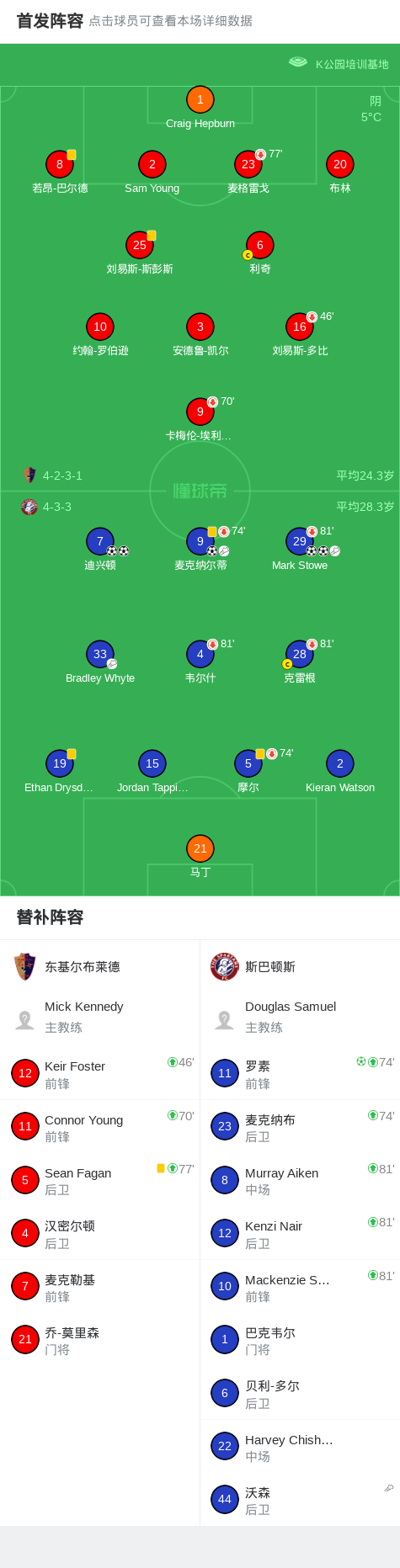 斯巴顿斯6-0横扫东基尔布莱德,迪兴顿两球,Mark Stowe两球