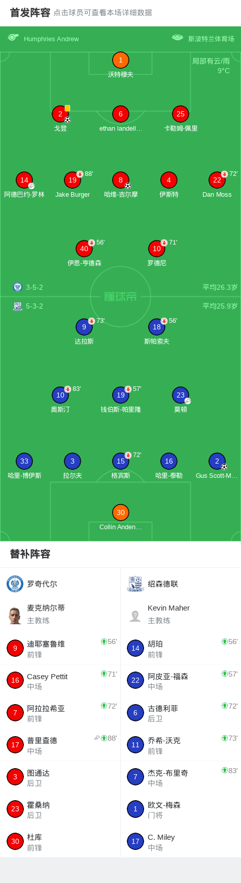 第90分钟,罗奇代尔球员普里查德助攻哈维-吉尔摩打入一球。