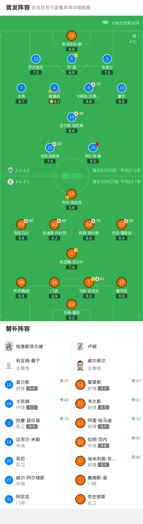 哈德斯菲尔德1-0卢顿,勒德森一锤定音