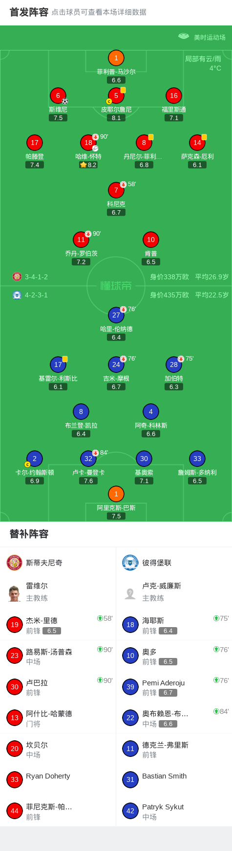 第79分钟,斯蒂夫尼奇球员哈维-怀特助攻斯维尼打入一球。
