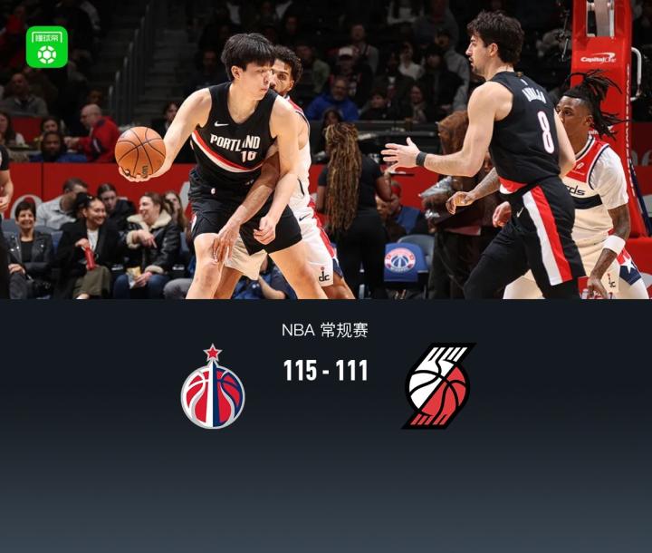 开拓者111-115不敌奇才,杨瀚森6分5板正负值+11,萨尔29+12