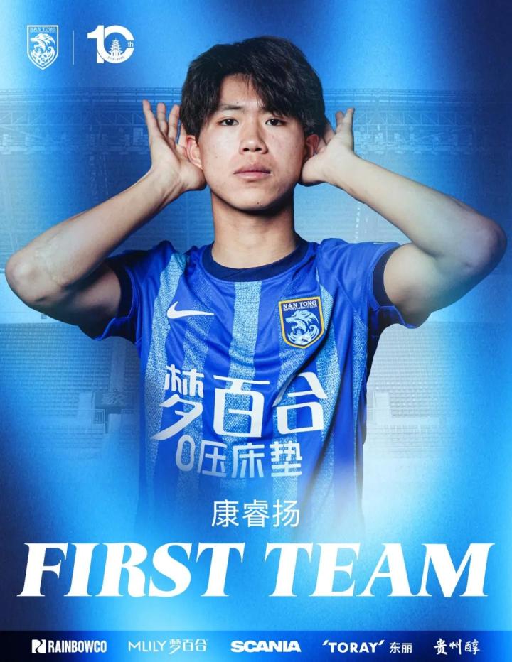 青训沃土育新苗,热血扬帆正当时。从梯队到一线队的跨越,是康睿扬逐梦路上的重要里程碑,期待这位年轻后卫在中甲赛场绽放光彩,以青春热血书写属于自己的足球篇章!